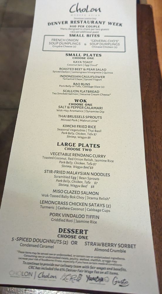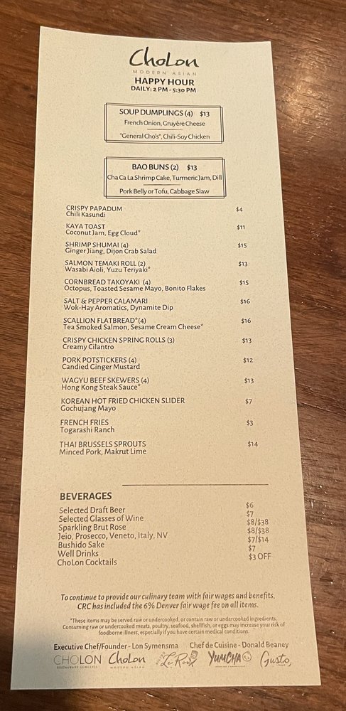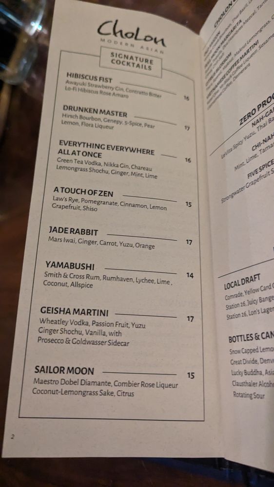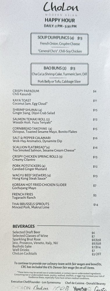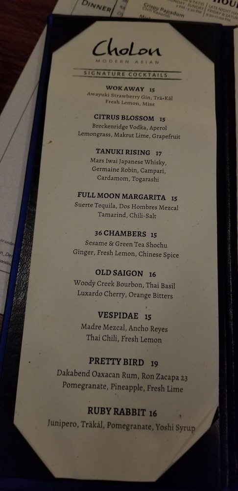 ChoLon Modern Asian - Downtown Menu (2025 Update)